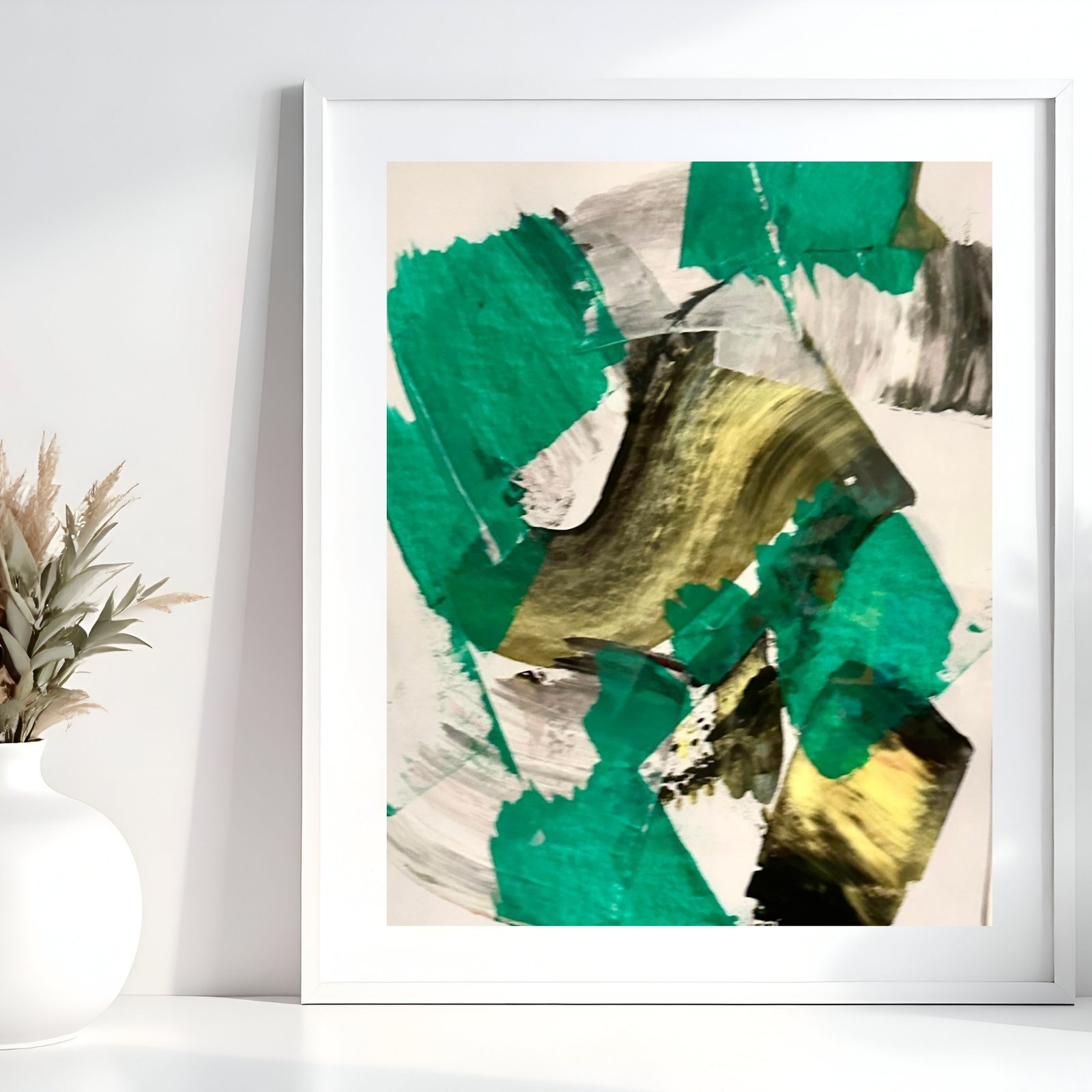 Farberausch M1 – Grüne Präsenz ist das erste Werk der neuen Serie Farberausch M. Dieses ausdrucksstarke Unikat verbindet smaragdgrüne Flächen mit goldenen und schwarzen Akzenten, die an organische Strukturen erinnern. Die künstlerische Geste ist frei, roh und rhythmisch – ein Spiel zwischen Spontaneität und Tiefe.