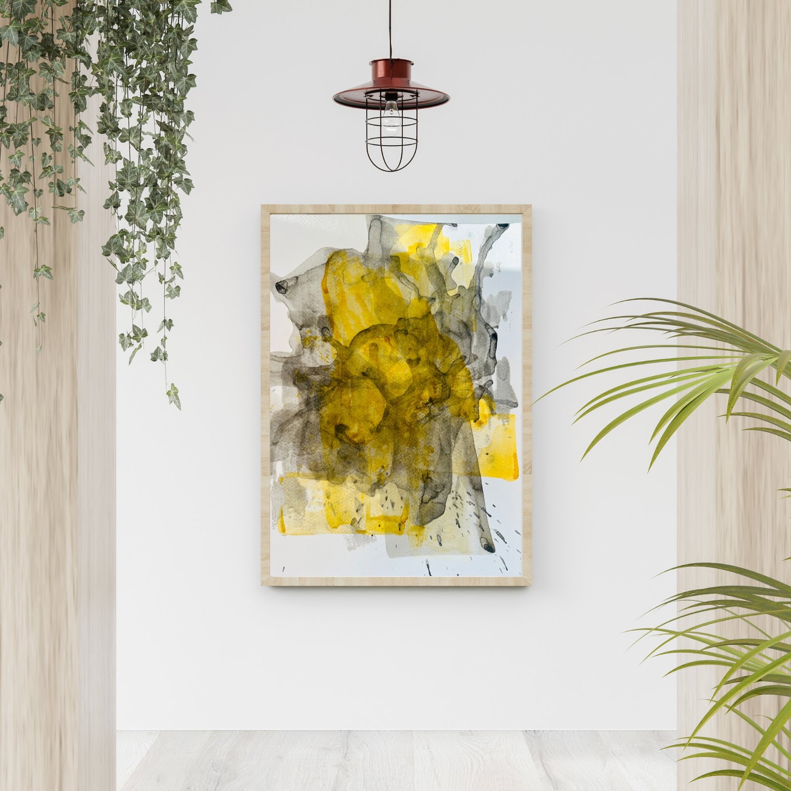 „Lumina III Innerer Glanz“ verdichtet das Lichtmotiv der Serie zu einem ruhigen, leuchtenden Kern. Das warme Gelb breitet sich organisch aus und wird von transparenten Grauschichten umhüllt, die wie Schatten und Schutz zugleich wirken.