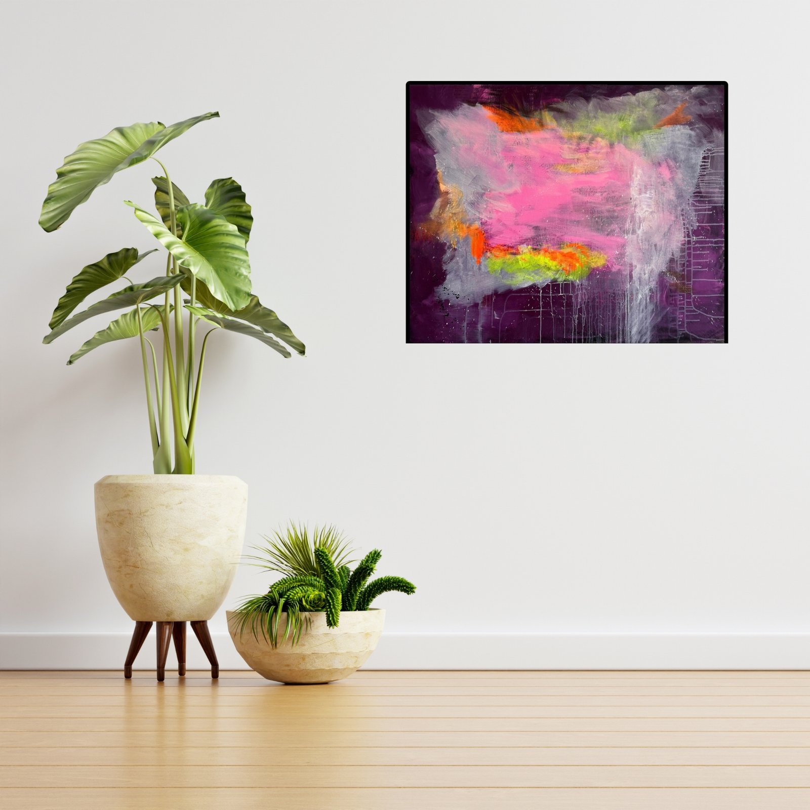 Dieses Werk aus der Serie Feelings bringt Farbe und Gefühl in harmonischem Einklang auf die Leinwand. Leuchtendes Pink, Violett und Neonakzente verbinden sich zu einer energetischen Komposition mit tiefer emotionaler Wirkung.