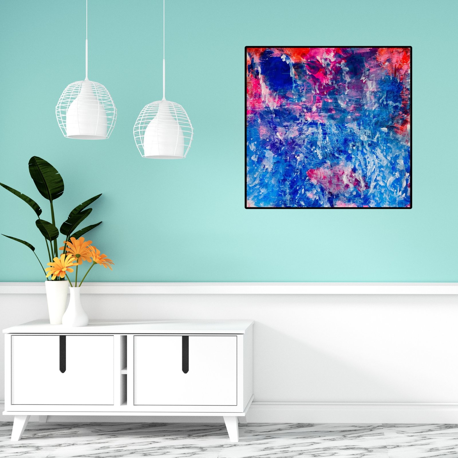 Ein intensives Acrylgemälde aus der Serie Feelings – in kräftigem Blau, Rosa und Rot. Emotional, strukturiert, einzigartig.